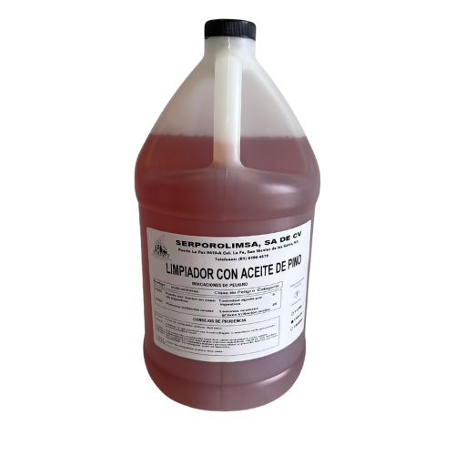 Limpiador elaborado a base de aceite de pino, cuyas caracteristicas principalesson aromatizar y desinfectar las superficies en las que se aplica.